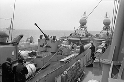 Some fine photographs of 147 class boats of the 7th FTPB Squadron at Kiel, including P6097 "Puma". Also, a pack of 140 class boats on their last detachment, passing "Puma" at 45 knots, shortly before these boats were taken out of service. Photos sent in by Ralf Kroeling, who served on "Puma" as helmsman 1974/1975.