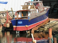 MT2800 saved in South Africa. After many years languishing in various back yards, MT2800 has finally been accepted by the South African Navy, and transferred to the Simonstown Dockyard, for restoration by Naval apprentice shipwrights. See her history in "Other boat histories"