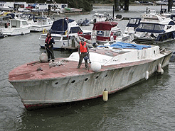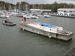 HDML 1387 Medusa on the slip at Hythe Southampton, ready for launch on March 1st 2010, after a long restoration.