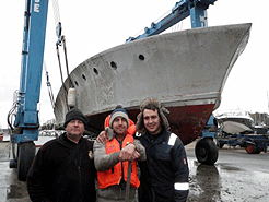 The engines have been repaired and serviced, the underwater hull repaired and antifouled, the hull polished and the deck and accommodation sanded down and painted.