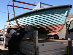FMD5004, a 16ft Fast Motor Dinghy, was delivered by road to the PNBPT on the 9th July 2009. Brian Patterson was on hand to receive the boat from Richard Hellyer.