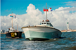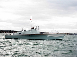 MGB 81 under way, using 2 engines, at the Southampton Boat show. The centre engine is unserviceable at this time.