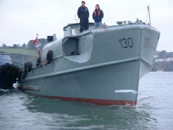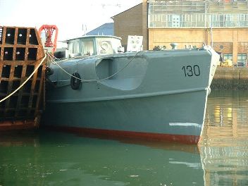 S130 was taken by tug, from the slipway, to the Southampton Boat Show, where a slow sail by was performed. We had supplied the Show organisers with a briefing for the announcers to use, whilst we were passing by. She then went to a berth alongside a pontoon in the Empress Dock, to await a decision on her next move.