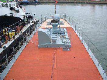 All above waterline exhaust outlets were bunged. The boat has been painted both underwater as well as above, and please excuse the colour if it is not exact, but costs have to be kept down. The numerals were placed at about the average position , which we obtained from the various pics on web sites.All the paint work was done by Trust volunteers, whilst the repair work was carried out by Hythe Marine Services.