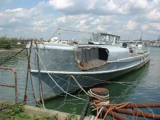 The E-boat S130 has been towed from the mud berth at Marchwood, where she has lain for the last one and a half years, to the slipway at Hythe Marine, in Hythe, Southampton, Hampshire England. We discovered that her sea cocks were open, and this explained the majority of water getting into the hull at each high tide. A smaller hull leak was found, which the onboard pump has been able to handle. The boat will be on the slip for about 12 days. We will attend to all underwater problems, and seal the hull for a tow to a yard yet to be announced, for restoration."