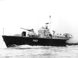 Below are 3 pictures of HMCN Bras d'Or, an experimental craft commisioned by the Royal Canadian Navy but has, as can be seen from her hull lines, an obvious lineage from the Admiralty Type A craft known as the 'Dark' class. She was launched by Mrs Hartley Zimmerman, wife of the Chairman of the Defence Research Board of Canada and apart from the obvious hyrdofoil attachments, she was powered by two Rolls Royce Marine 'Griffon' engines. (Courtesy of Ted Else)