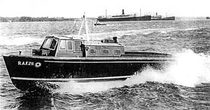 The early craft of the 200 series were powered by twin Power Meadows petrol engines, which were produced for the British Power Boat Company by the Meadows Company of Wolverhampton. Each had a rating of 100hp and through Meadows gearboxes directly drove the 14" manganese bronze propellers. Maximum speed was about 29 knots which could be maintained for ½ an hour. Otherwise the maximum cruising speed was 24 knots and with the 65 gallons of fuel carried, gave an endurance of 140 miles. Later units of the 200 series seaplane tenders (craft numbered 292-303 and 323-324) were powered by twin Perkins S6M diesel engines. Several of the type, like ST 206, were subsequently converted to Firefloats. |