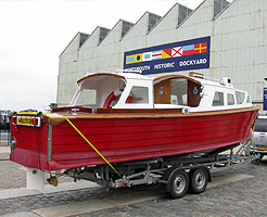 The two 25ft Fast Motor Boats on display at Marchwood are of the standard Admiralty design which evolved from numerous types built by the well known boat builders pre-war. The Fast Motor Boat, used as a Captain's Boat, was first introduced to the Admiralty by British Power Boats early in 1935, when the first of this type, actually three of 24V2ft, were built for the HMS Enchantress, HMS Exmouth and C-in-C Fleet Portsmouth. Subsequently a series of craft, also by BPB Co, but of 25ft, were built for the "G" class destroyers.