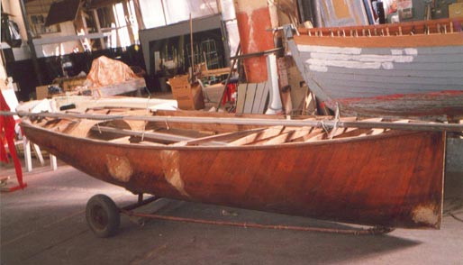 Cold Moulded twin diagonal laid Mahogany veneer bonded with marine resin based adhesive.