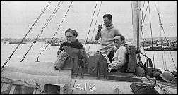 Briefly at ease in the Assault Area, June 1944. Left to right: Lt. Cam Gough (416), Lt. F. Head (414) and Sub.Lt. G Baptie (1st Lt 416) on bridge of 416 of 1st. Flottila (Courtesy F.S.Large)