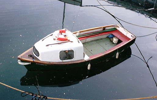 Nimbus is a small Glass Reinforced Plastic (GRP) boat based on the Langstone Fisherman design, she is fourteen feet long , 5Feet beam and is used as a general service workboat mainly within the Mast Pond. She is capable of being used with both an Outboard Motor and also oars (this is the primary use)