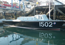 ST 1502 after 12 years in active service, was removed from the water to the Hornet Joint Services Yacht Club. Her engines were removed, and replaced with ex MoD unused similar Fords, with a slightly uprated 120 hp. The gearboxes were overhauled by ZF, and fitted to the "new" engines. The original props were replaced with new, as were the flexible couplings.