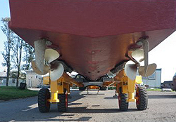 General housekeeping was carried out, and she is now back in the water, awaiting the engines to settle into the hull, and these can then be aligned, secured and connected to the shafts. Trials will follow.