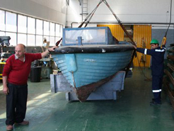 FMD5004, a 16ft Fast Motor Dinghy, was delivered by road to the PNBPT on the 9th July 2009. Brian Patterson was on hand to receive the boat from Richard Hellyer.
