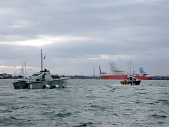 Brian Patterson of the Portsmouth Naval Base Property Trust was on hand to receive the boat from Richard Hellyer and David Ross.