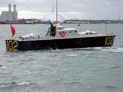 MGB 81 under way, using 2 engines, at the Southampton Boat show. The centre engine is unserviceable at this time.