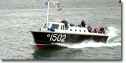 July 2nd we took 102 back down the harbour to the Heritage Quay and picked up our guests. The day was fine and sunny and the sea conditions perfect so that we were able to demonstrate 102 to her best advantage and the members of the Transport Trust left very impressed by our boat. The Transport Trust gave the MTB102 Trust a restoration award two years ago and wished to see the vessel first hand. They were not disappointed.