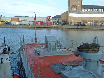 S130 was taken by tug, from the slipway, to the Southampton Boat Show, where a slow sail by was performed. We had supplied the Show organisers with a briefing for the announcers to use, whilst we were passing by. She then went to a berth alongside a pontoon in the Empress Dock, to await a decision on her next move.