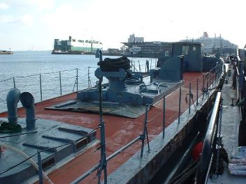 All above waterline exhaust outlets were bunged. The boat has been painted both underwater as well as above, and please excuse the colour if it is not exact, but costs have to be kept down. The numerals were placed at about the average position , which we obtained from the various pics on web sites.All the paint work was done by Trust volunteers, whilst the repair work was carried out by Hythe Marine Services.