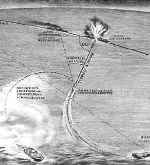 In the confusion of the action and darkness, it was impossible to be certain what was happening. The British Fighter Direction Tender, FDT 217, had sailed out of Portland to provide radar and communications cover (she was one of three FDTs that would provide stalwart service off Normandy two months later) but, on this particular night, she received a signal: "Make port all haste" which she duly did. Elsewhere the scale of the debacle was becoming only too apparent.