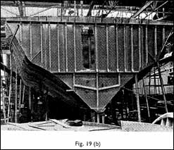 It was decided by the Director of Naval Construction that the basic load bearing structure should consist in welded aluminium, the bottom and sides would be of double diagonal mahogany planking. The planking is fastened to the aluminium by stainless steel bolts. (See Fig. 19 (a), (b) and (c).)
