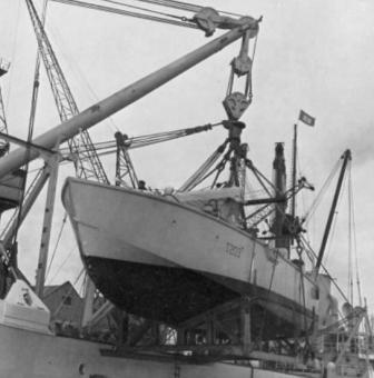 The Burmese T203 loading on the heavy lift ship SS Benwyvis at Southampton