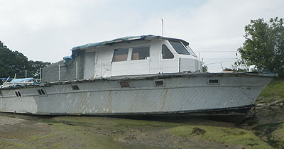 She has just been bought and will be re-converted to house boat proper.