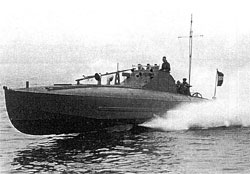 During World War 1 of 1914-18, following a suggestion from three officers of the Harwich destroyer force that small motor boats carrying a torpedo might be capable of traveling over the protective minefields and attacking ships of the German Navy at anchor in their bases, the Admiralty gave tentative approval to the idea and, in the summer of 1915, produced a Staff Requirement. This was for a boat which, complete with an 18 inch torpedo, should not exceed the weight of the 30 foot motor boat then carried in the davits of a light cruiser, namely 4.5 tons. The speed of the boat when frilly loaded, was to be at least 30 knots and sufficient fuel was to be carried to give a considerable radius of action.