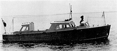 The two 25ft Fast Motor Boats on display at Marchwood are of the standard Admiralty design which evolved from numerous types built by the well known boat builders pre-war. The Fast Motor Boat, used as a Captain's Boat, was first introduced to the Admiralty by British Power Boats early in 1935, when the first of this type, actually three of 24V2ft, were built for the HMS Enchantress, HMS Exmouth and C-in-C Fleet Portsmouth. Subsequently a series of craft, also by BPB Co, but of 25ft, were built for the "G" class destroyers.