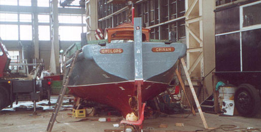 Cyclops was obtained from the Crinan Harbour Authority where she had been used as mooring buoy tender / work boat. Prior to this she was used as a small ferry carrying people, stores and livestock between the Hebridian islands.