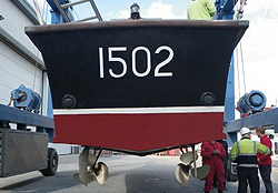 ST 1502 after 12 years in active service, was removed from the water to the Hornet Joint Services Yacht Club. Her engines were removed, and replaced with ex MoD unused similar Fords, with a slightly uprated 120 hp. The gearboxes were overhauled by ZF, and fitted to the "new" engines. The original props were replaced with new, as were the flexible couplings.
