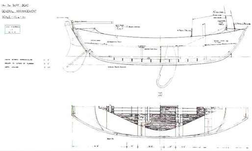 She has a drop keel and would have been rigged for sail or rowing. The ‘surf boat’ is generally in very poor condition and is only for dry display. She has a cold moulded hull made up of two layers of diagonally laid mahogany strips glued to each other. She was obtained by the trust in 1992 in poor state of repair. Some major preservation work was carried out prior to her being located in number 4 Boat House as a long-term display.